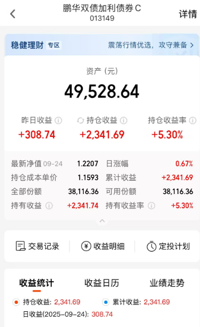 固收+: $鹏华双债加利债券C(OTCFUND|013149)$