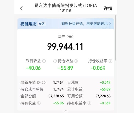 易方达这只债指,断断续续一个多月我加仓到了十万,到昨天小幅浮亏。考虑到我买的是这只指数产品的A类,初期手续费会比较高,我在这只产品上整体收益基本持平。基本佐证了债市目前的状况——除了回暖之前的超跌,要再次顺利上涨,需要债市利多事件落地,我这个操作就是左侧,相对目前不少观望的投资人更加积极。。
