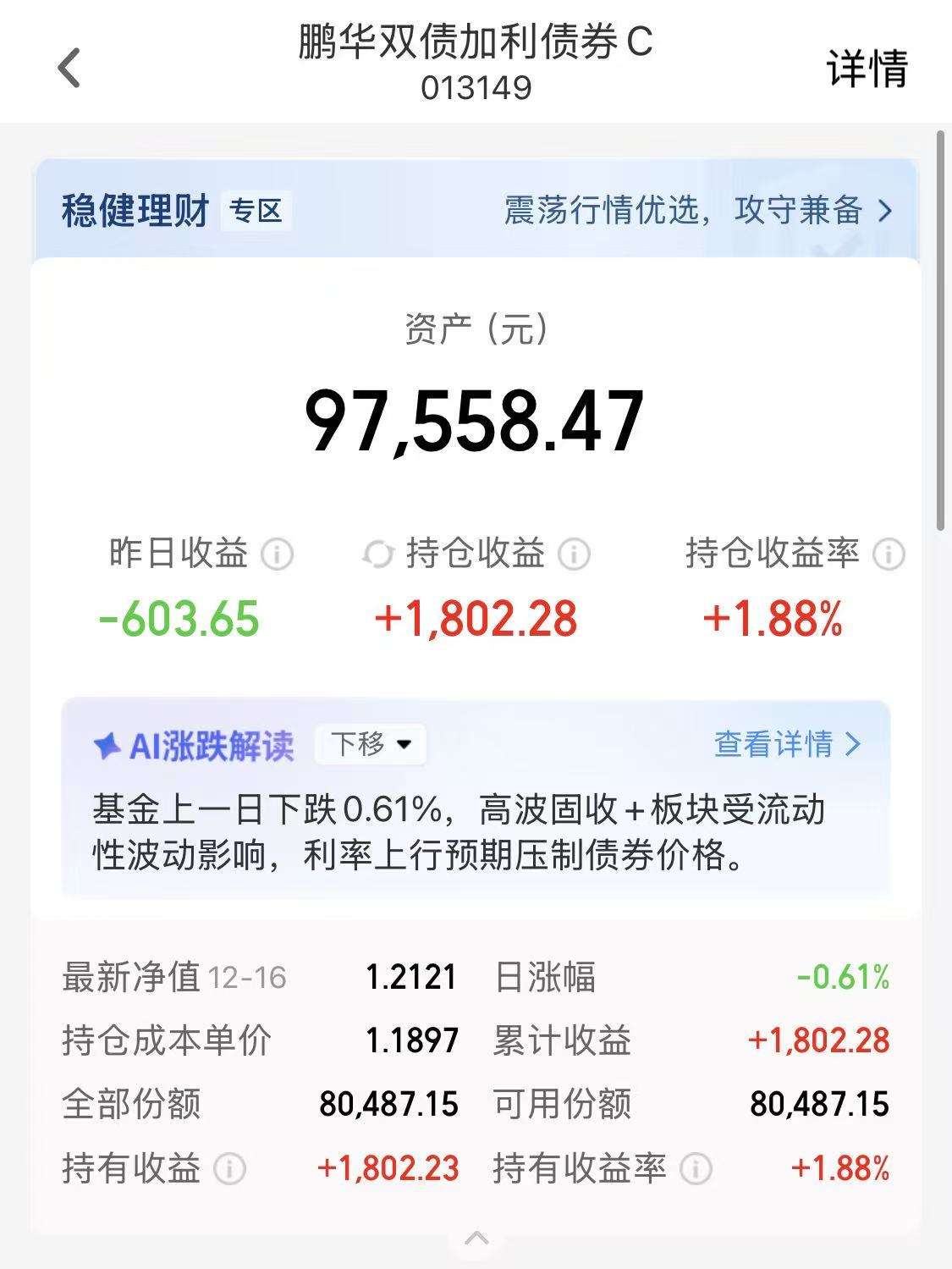 固收+加仓:鹏华双债加利  +2000份额$鹏华双债加利债券C(OTCFUND|013149)$