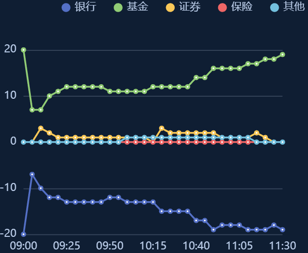 盘中成交积极性很一般,基金今天转买,券商、险资都在观望。随着午间基金买入力扩大,超长端涨幅扩大。