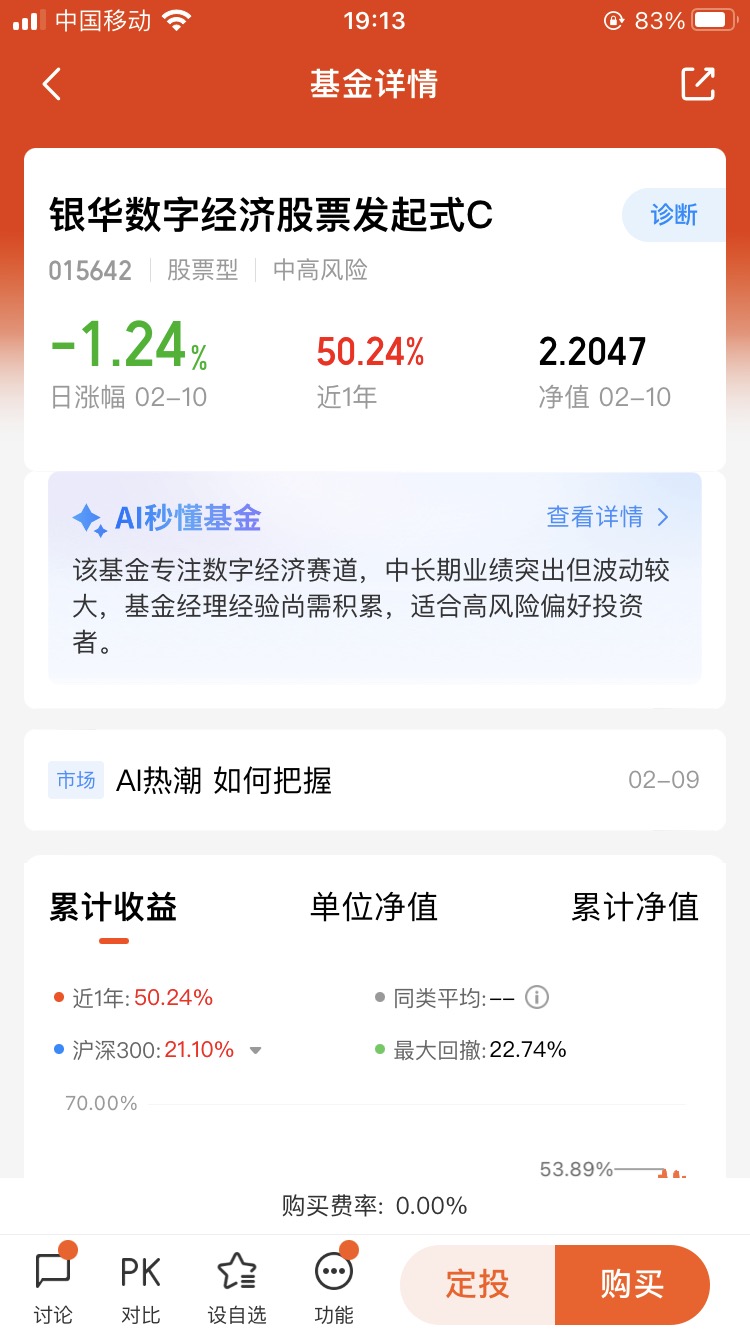 $银华数字经济股票发起式C(OTCFUND|015642)$