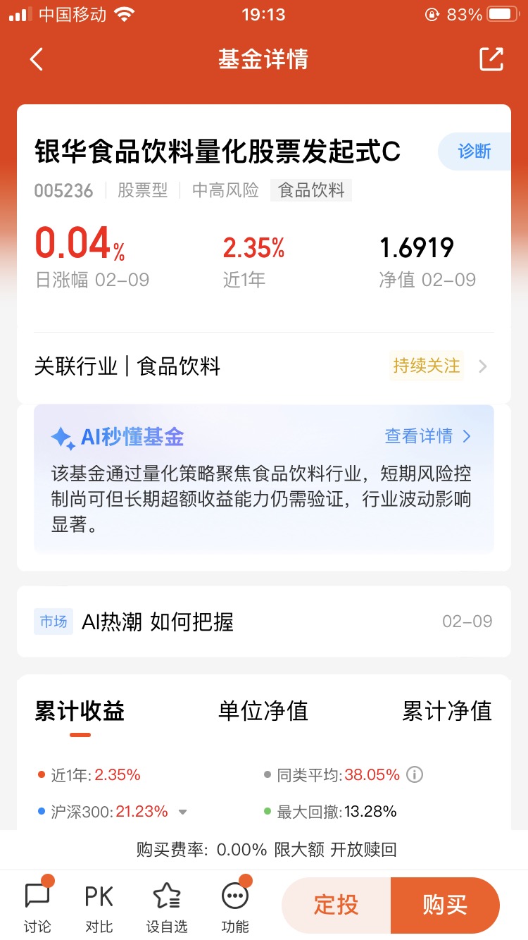 食品饮料就更不用说了,属于防御性板块,涨跌都比较平缓,虽然稳,但想靠它承接黄金退潮后的资金,赚点可观的收益,难度太大。咱们普通人投资,说白了还是想在稳妥的前提下,能有一些增值,食品饮料显然达不到这个预期,更适合用来避险,不适合当接档的主线。$银华食品饮料量化股票发起式C(OTCFUND|005236)$