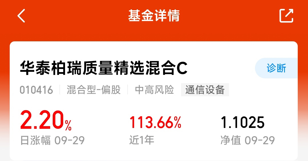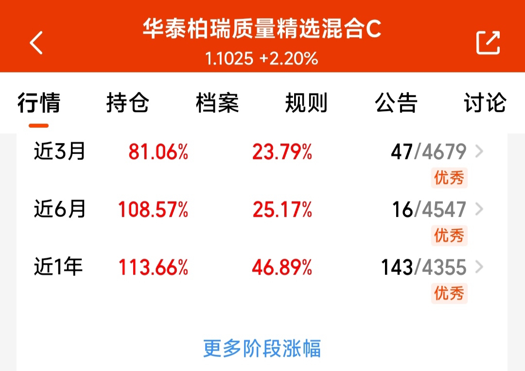 看着$华泰柏瑞质量精选混合C$今天涨2.20%,三个月81%,一年113%!算力