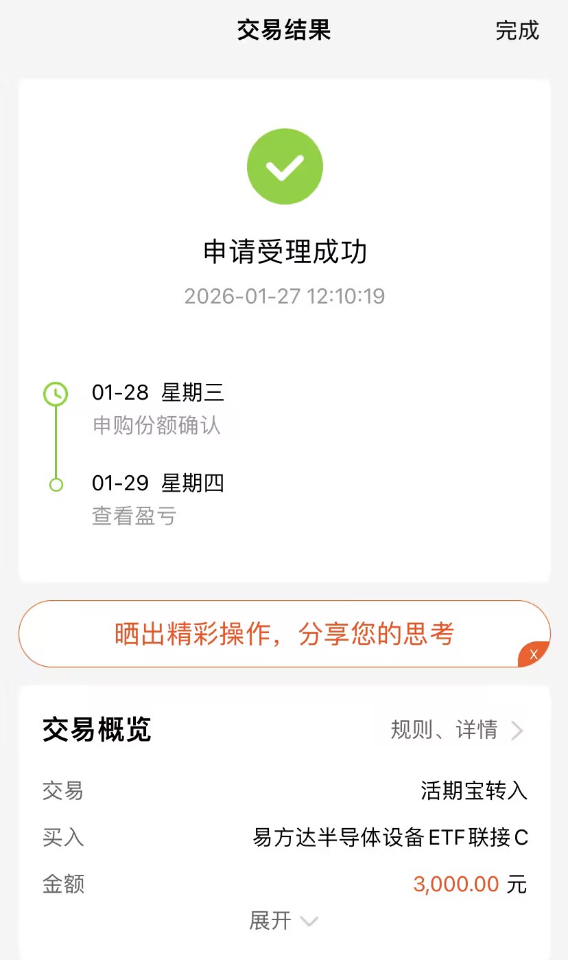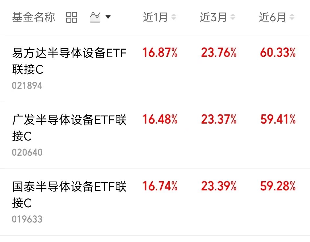 科技赛道的市场信心还是很足的,我也看好国产替代这个大趋势。后续随着半导体科技相关政策的引导,肯定会有更多资金涌入。今天半导体板块的弹性也不错,易方达半导体设备 ETF 联接 C 估值涨了 2.51%。看好芯片就选半导体设备指数,这只年度涨幅超 77%,完全可以继续定投,做中长线布局。