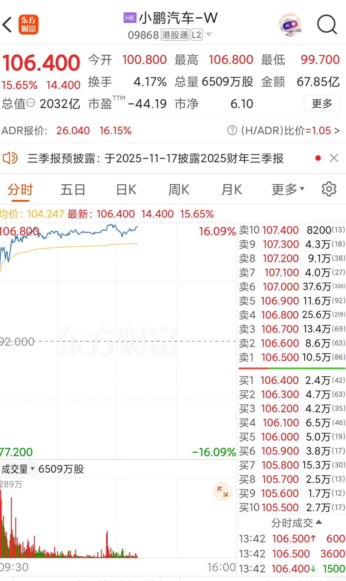 随着美联储晚间关于降息基点的分歧,直接迎来美股市场暴涨。周一晚间最亮眼的中概股莫过于小鹏汽车,直接以16.24%的大涨强势领跑中概股,推动纳斯达克中国金龙指数收涨2.25%。同样港股市场小鹏汽车高开高走涨超15%,带动港股通汽车汽车板块集体走强!