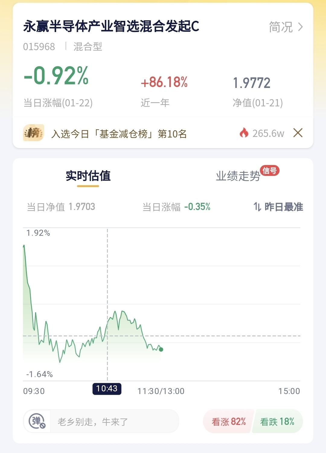永赢半导体产业智选混合发起C今日预估跌幅0.92%!