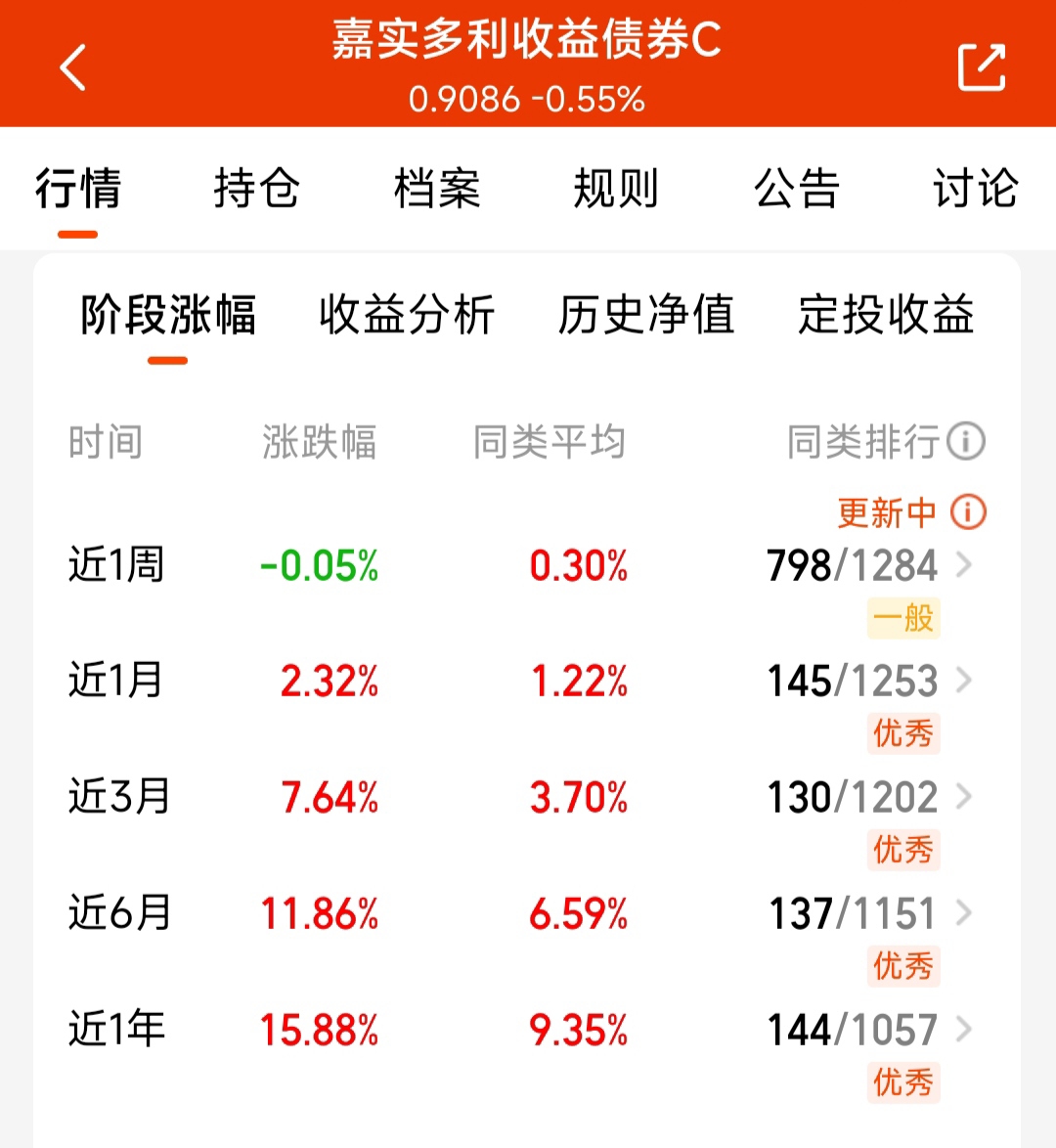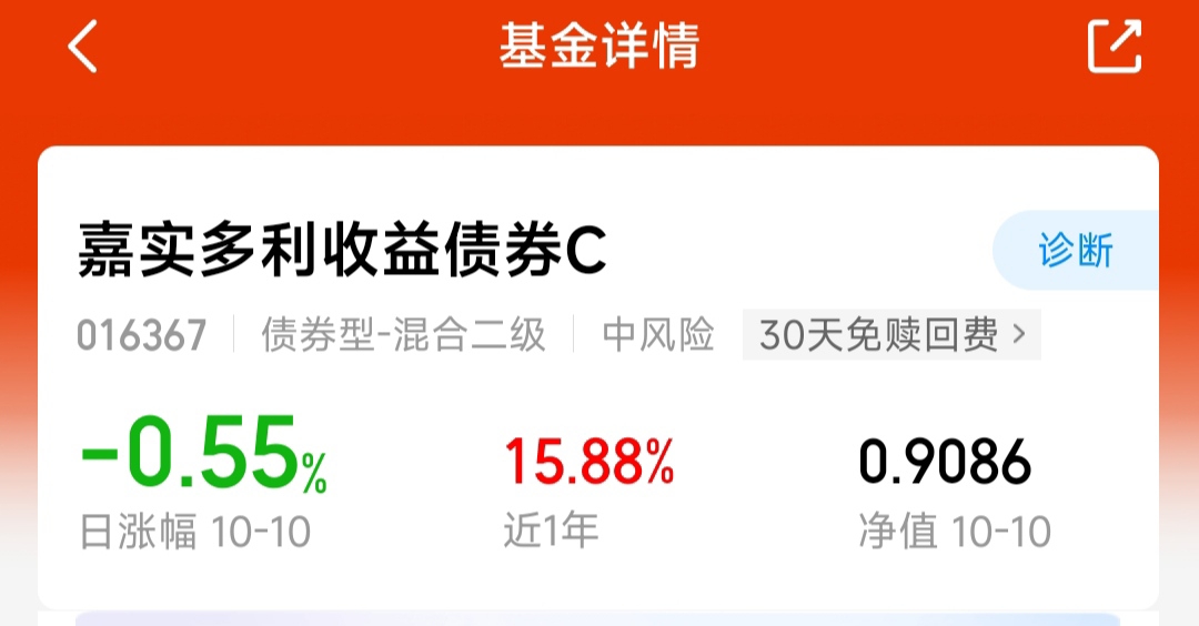 $嘉实多利收益债券C$ 该基金将80%的资产配置于债券,通过稳定的票息收入构建安全基础;同时以20%的资产灵活参与股票市场,把握股市上涨机会,增强整体收益。这种策略在震荡市中既能有效控制下跌风险,又能把握股市上涨机遇。从历史表现来看,该基金业绩相对稳健,昨日收蛋49个,近三个月收蛋764个,近一年累计收蛋1588个,整体表现值得关注,今日跟随市场回调,也是机会吧。