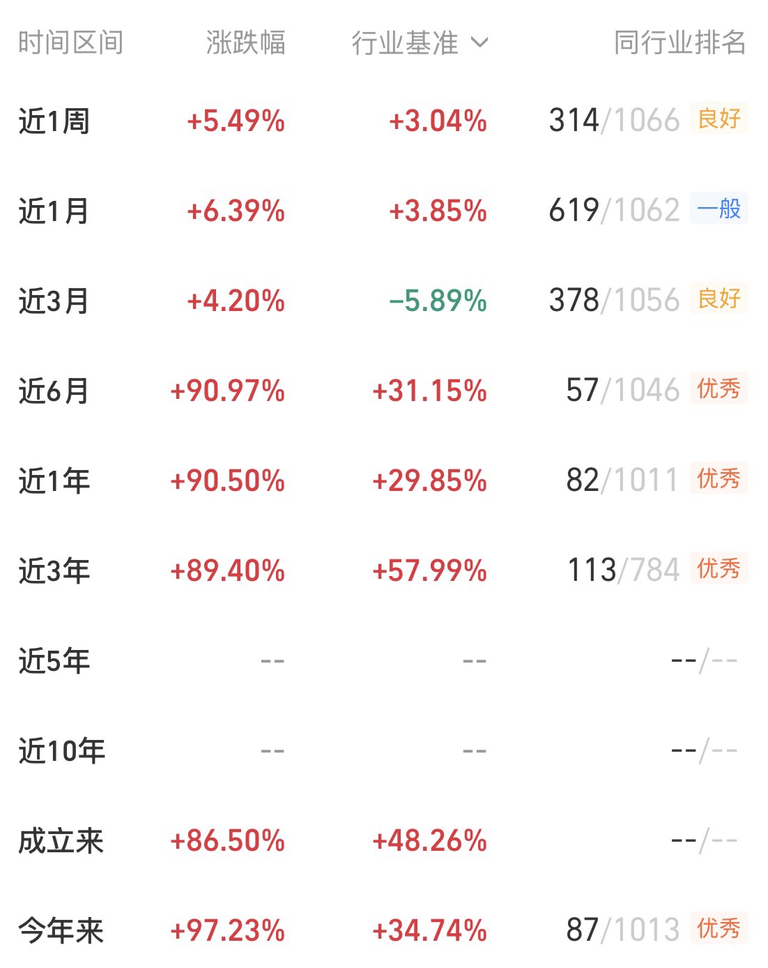 从结果看,这套方法是有效的。截至2025年12月26号,这只基金年内收益超过了97.23%,近一年收益接近91%,在同类产品中排名很靠前。这至少说明,在这一轮科技浪潮里,这位基金经理不仅“选对了方向”,更重要的是“把方向变成了实实在在的收益”。这一点,恰恰是我最看重的。