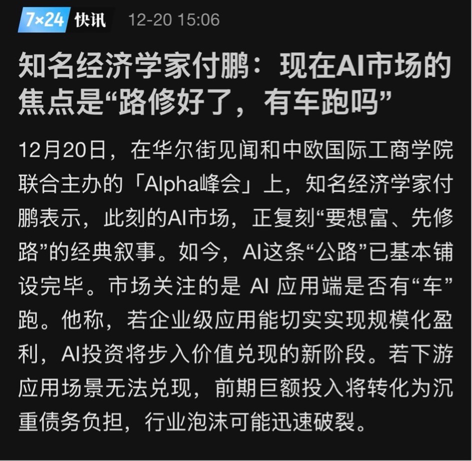 这个泡沫,与其说是灾难,不如说是一个“选择器”。它逼着所有公司回答一个最根本的问题:你到底是靠讲“算力”的故事活着,还是真的解决了用户的某个痛点,能产生持续的现金流?未来五年最危险的一种错觉,就是以为自己参与了AI革命,其实只是站在了算力巨头的“尾气”里。能不能建立起“算力投入 -> 应用价值 -> 现金流回报”这个闭环,将是决定生死的唯一标准。