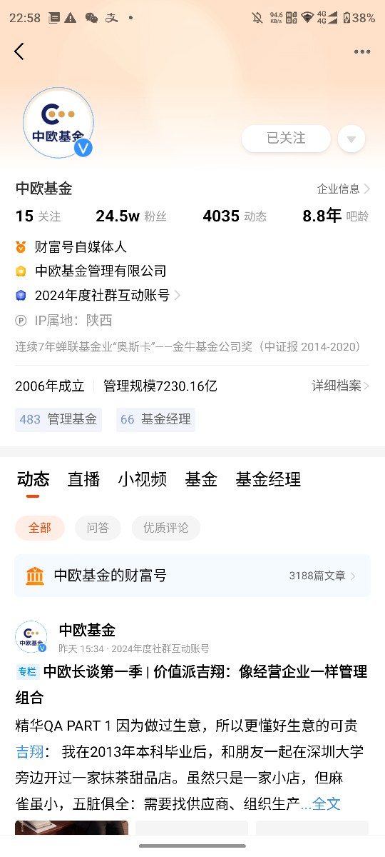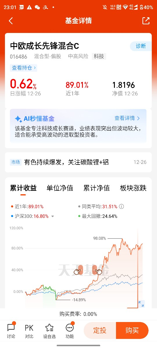 #基金经理刘伟伟来调研# 作为持有中欧成长先锋混合C近一年的老基民,看到刘经理来调研真的特别开心!这一年里,我不仅跟着这只基金分享了科技成长板块的上涨红利,更通过基金季报和刘经理的投资思路,对科技成长投资有了更深刻的认知,也彻底明白了“选对基金经理比选对赛道更重要”的道理。