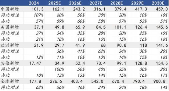 图2:2025年-2030年全球储能装机规模测算(gwh)