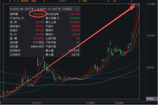 图3:GFEX碳酸锂主连价格下半年以来已上涨超过100%