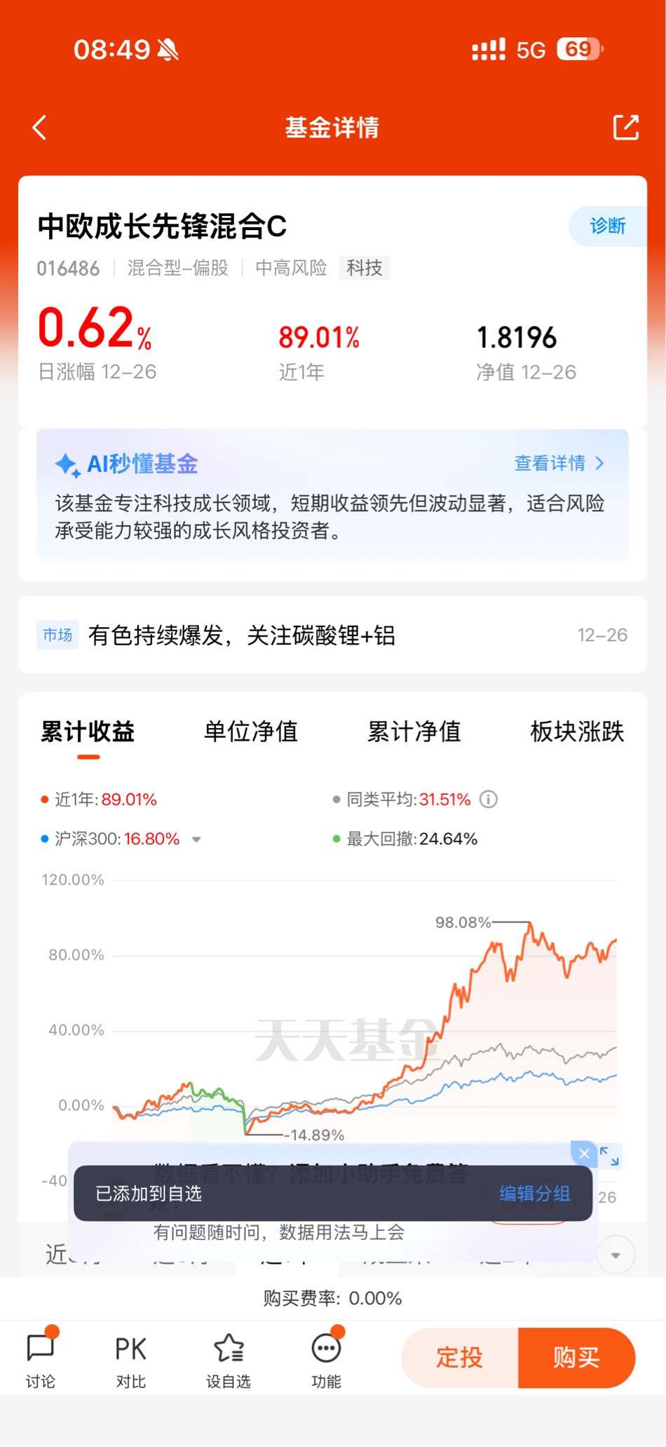实际持有体验也印证了我的判断。前阵子大盘几次冲高回落,不少纯赛道型成长基金跌幅明显,而中欧成长先锋混合C的净值波动却温和很多。后来看季报才发现,它的持仓既包含了业绩稳定的细分龙头,也配置了一些估值合理的新锐企业,攻防兼备的组合,让基金在市场回调时扛得住压力,市场反弹时又能跟上节奏。