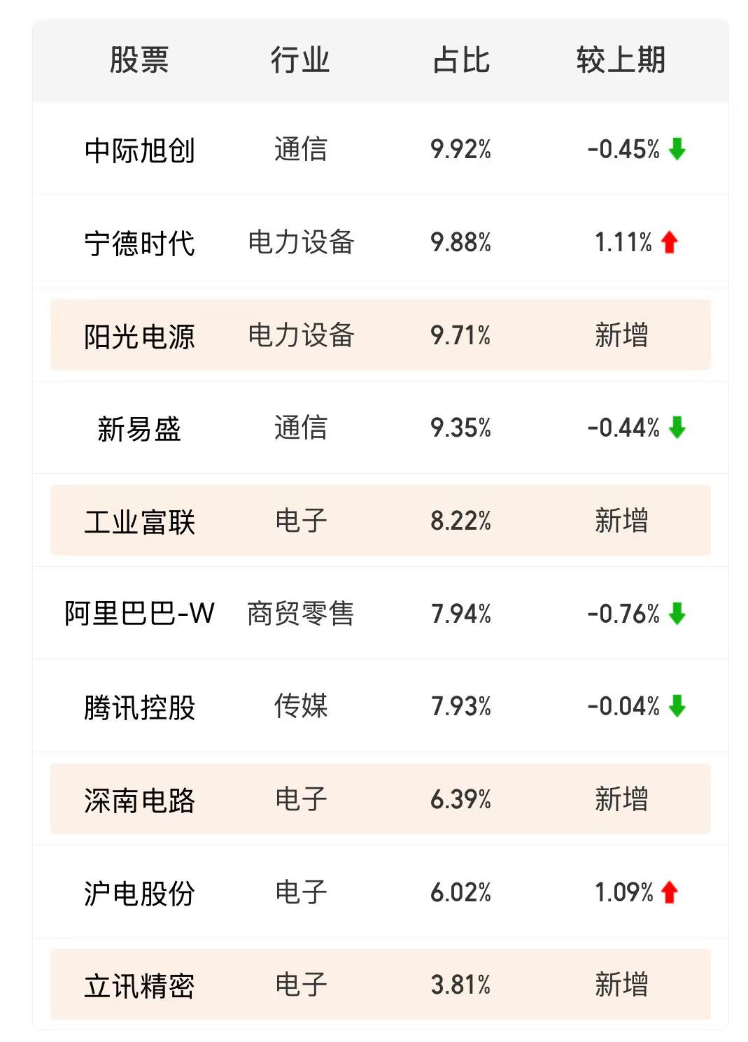 2. 新能源产业链:宁德时代(9.88%)、阳光电源(9.71%),作为全球动力电池和光伏逆变器龙头,充分受益于新能源产业的持续高增长。