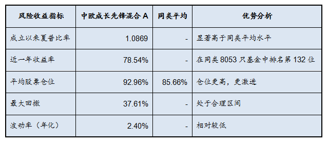 与同类基金相比,中欧成长先锋混合基金的风险收益特征具有以下特点: