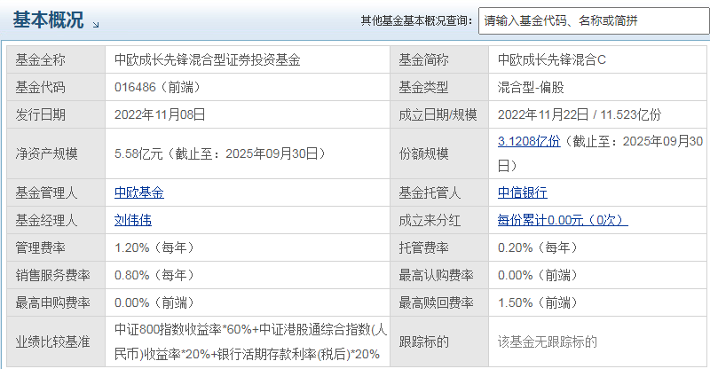 中欧成长先锋混合基金在取得优异业绩的同时,其风险收益特征也值得投资者关注。根据基金披露的数据,截至2025年9月30日,基金成立以来的夏普比率为1.0869,显示其风险调整后收益表现优秀。