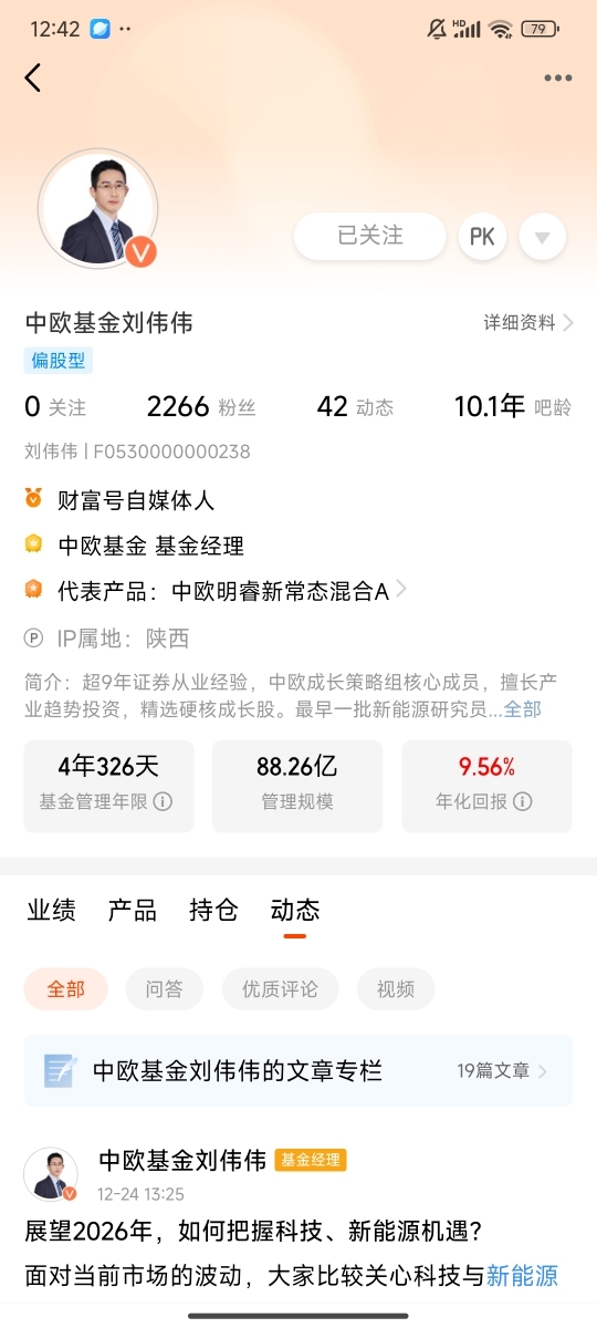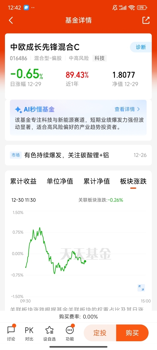 12月18日,我有幸参加天天基金调研团,与中欧基金的刘伟伟展开一场深度交流。当下科技、新能源赛道热度居高不下,可估值已经脱离低位区间,波动风险越来越明显,这次调研让我对“认清大势,精选优质标的,坚定持有”这句话有了更切身的体会,也让我更加笃定,要把中欧成长先锋混合C作为2026年投资布局的核心标的之一。