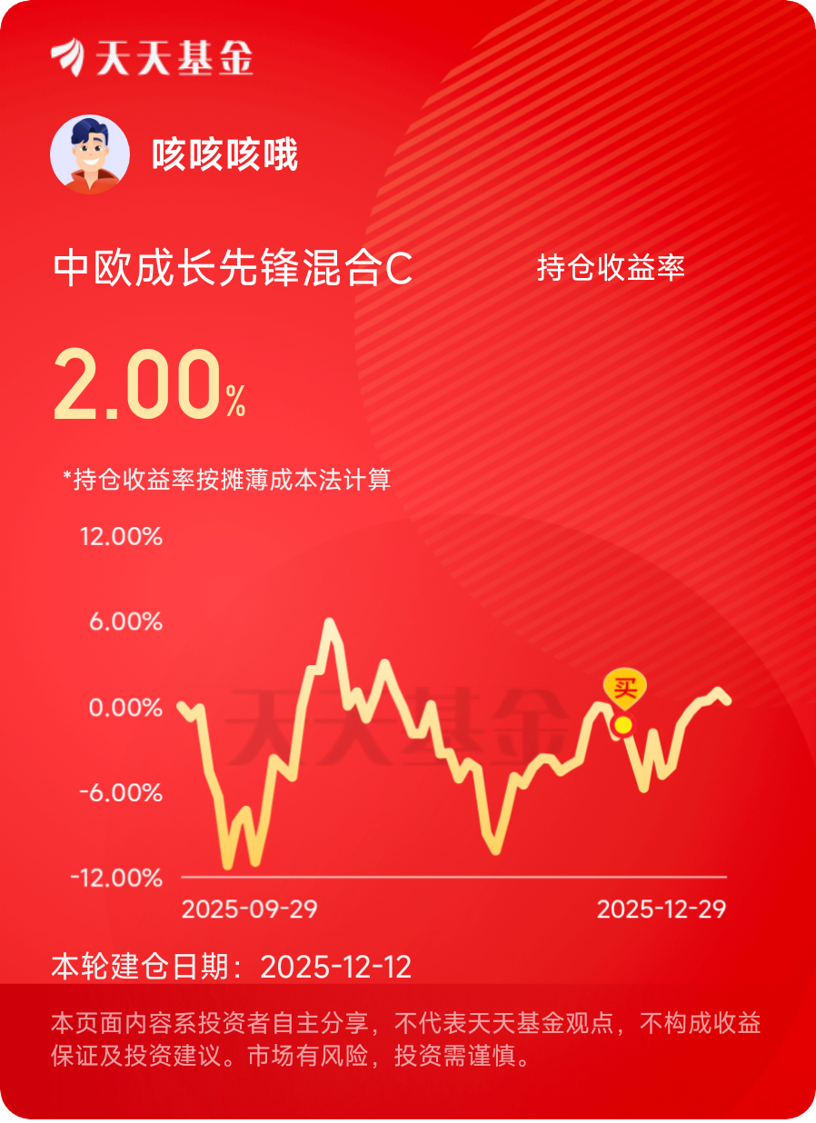风险提示:基金投资有风险,过往业绩不代表未来表现。以上内容仅为个人投资心得分享,不构成投资建议。投资者应根据自身风险承受能力,独立判断并谨慎决策。@中欧基金 @小努力加油