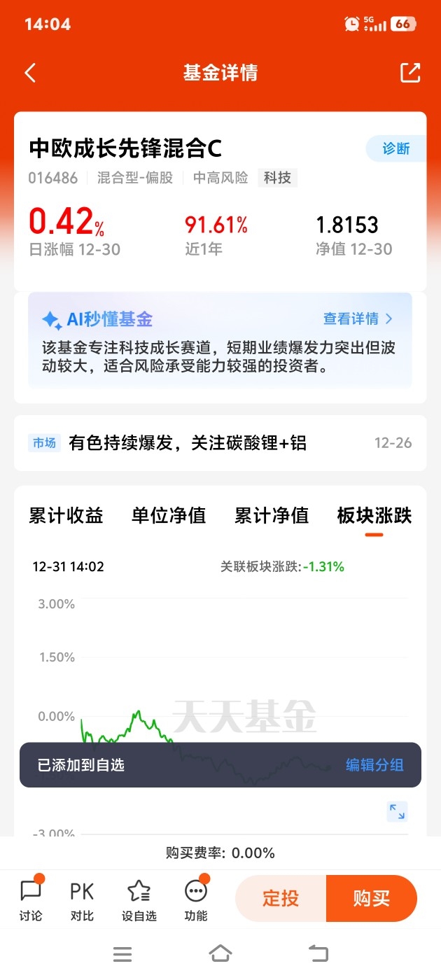 #基金经理刘伟伟来调研#$中欧成长先锋混合C$ 基金经理刘伟伟,凭借13年证券从业与8年投资经验,在科技成长领域形成了独具特色的投资体系。他以“前瞻筛选景气行业、精选优质标的、动态调整持仓”为核心策略,聚焦高景气赛道的头部企业,通过集中持仓(前十大重仓股集中度长期超60%)捕捉产业红利,同时以夏普比率优于94%同类基金的表现平衡组合波动。