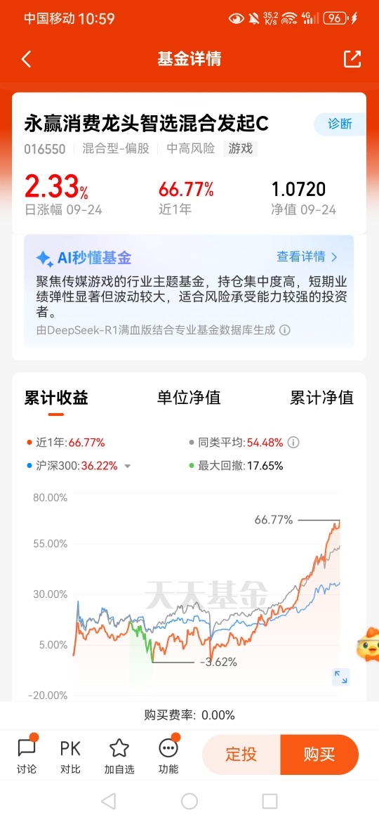 #谁玩理财还内耗呢# 随着居民收入提升和消费升级,服务消费、科技消费等领域需求持续增长,为消费板块提供新的增长动力。永赢消费龙头昨日上涨+2.33%,近一年涨幅+66.77%;长期业绩优秀;当前消费板块估值处于历史低位,安全边际较高,具备估值修复空间。