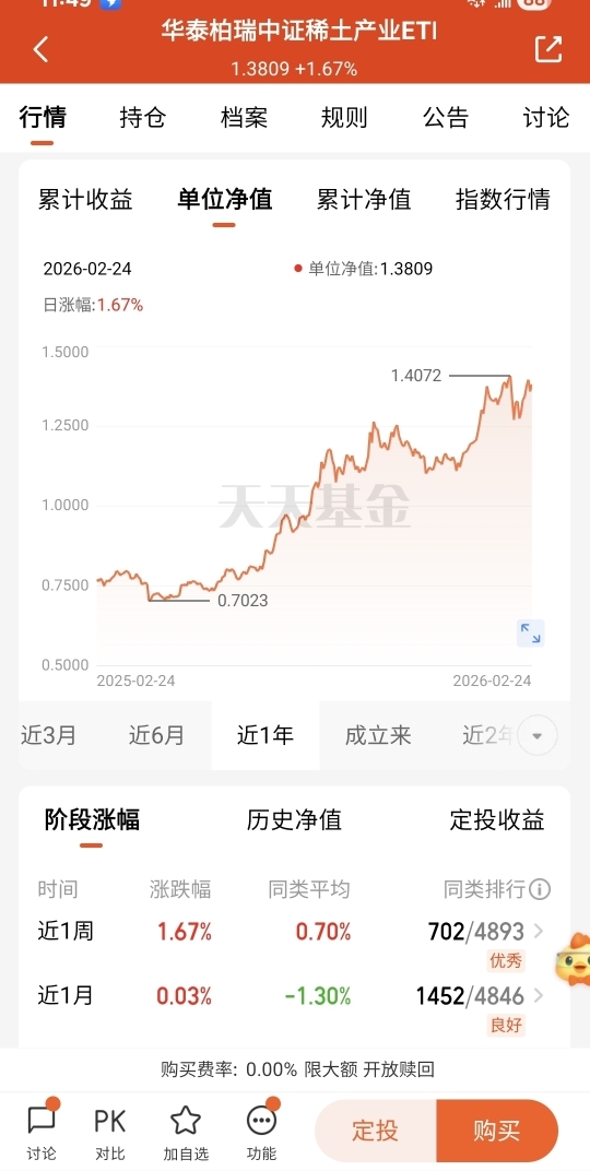 最近市场板块轮动太快了,很多题材涨一天跌一天,根本拿不住,反而今天爆发的稀土这种顺周期资源股,有实实在在的价格支撑,成了资金的避险选择。我准备用华泰柏瑞配一点,平衡一下自己的持仓。