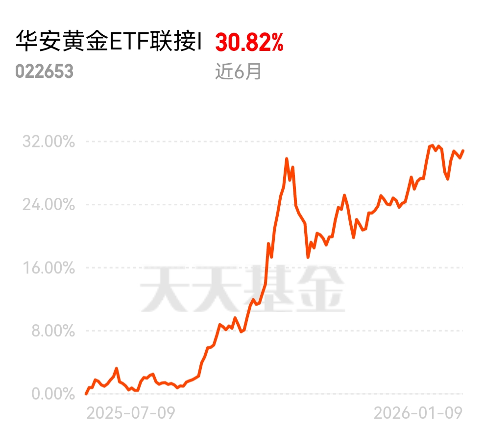 $华安黄金ETF联接I$ 近 6 月涨 30.82%,近 3 月 9.88%,费率最低还灵活,省下来的钱都是收益,持有越久越香