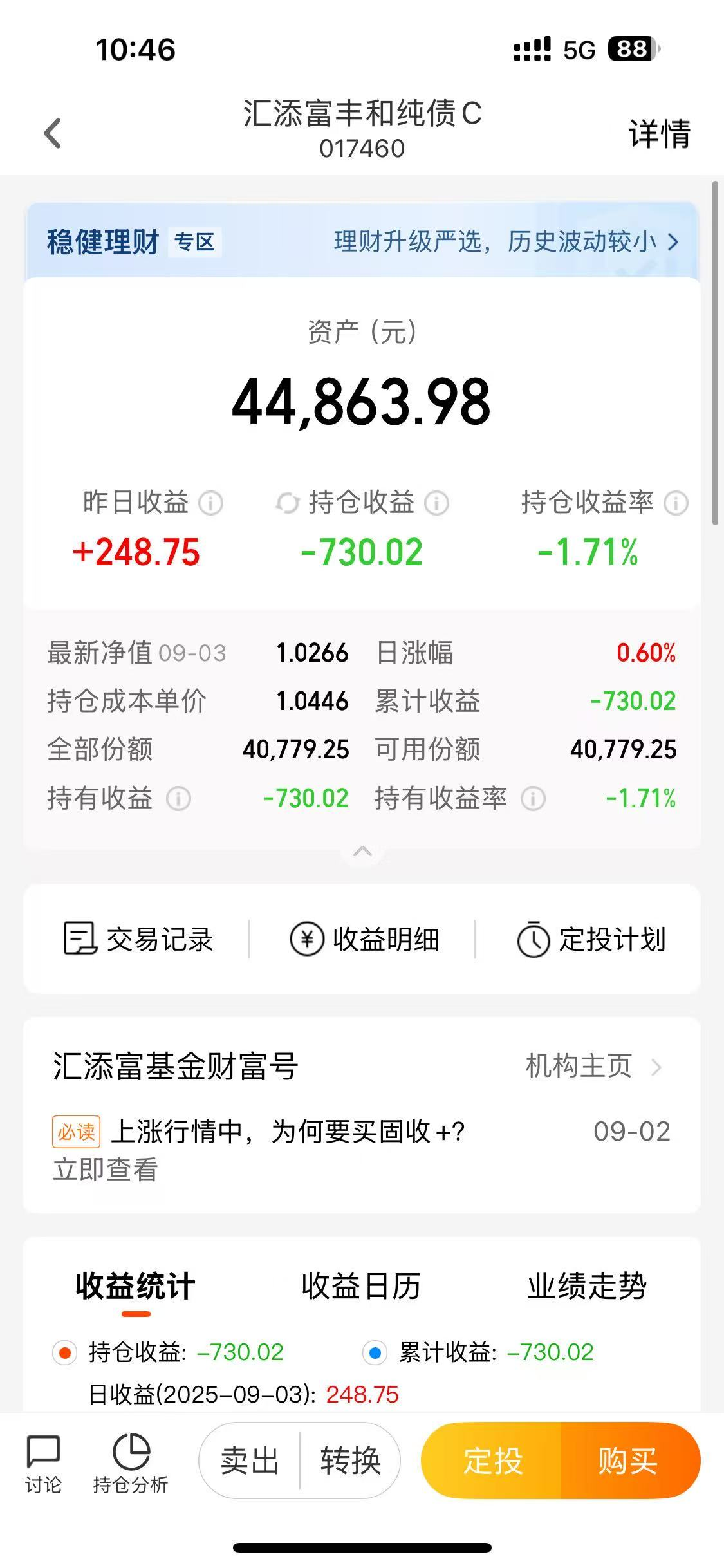 超长(华子、汇添富丰和等):同理,简单两个字“抄底”。$华泰保兴安悦债券C(OTCFUND|020741)$