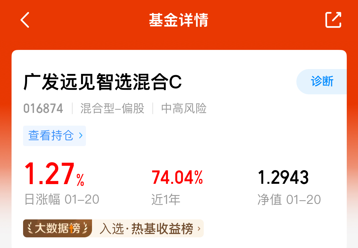 我加5000元 $广发远见智选混合C(OTCFUND|016874)$(016874)