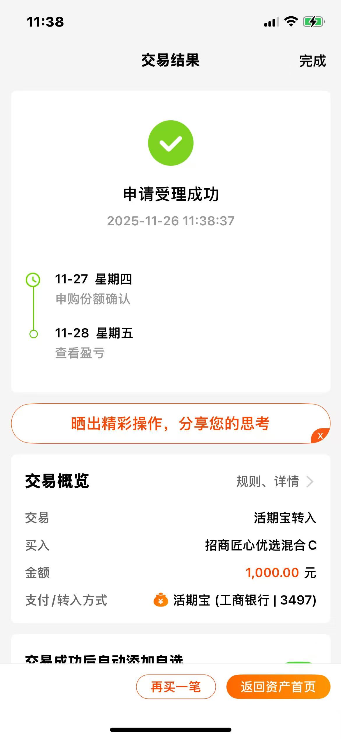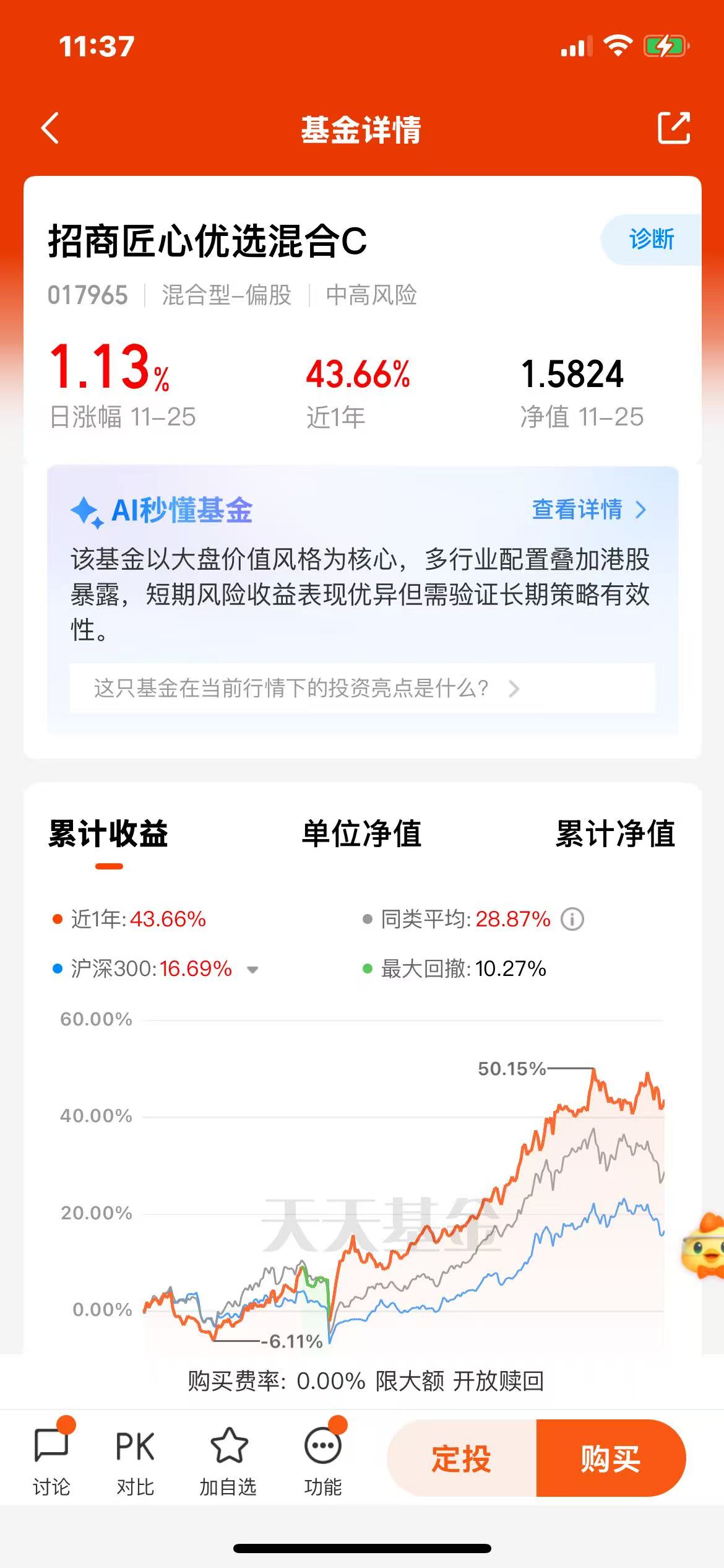 整体来看医疗一直都是在低估区间,性价比更高一些。长期布局问题不大。趁着这个低位我今天上车$招商匠心优选混合C(OTCFUND|017965)$早前看估值的时候就涨超1.5%了