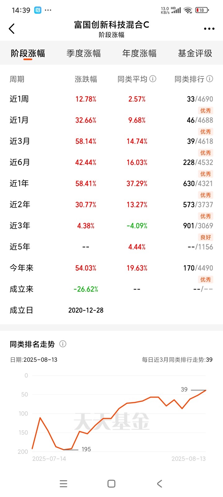 昨天大涨6.13%,近1月大涨32.66%,近6月大涨42.44%,又是一只聚焦人工智能方向的黑马基金。富国创新科技我昨天就有跟你们分享过,今天恰好科技回踩我就逆市做个低吸,建仓1000。