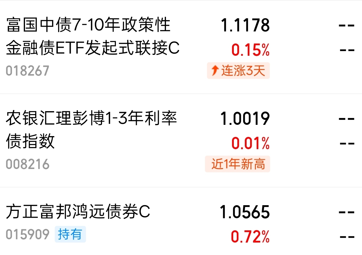 继续拉升,债市已经红盘,目前债市两连红,希望利率债稳住!长债红0.5个BP,根据央行最近的表现维稳态度很明显啊。盘面上具体的券种表现:利率债:1年期平盘,10年绿0.01BP,超长红1.2个BP;信用债这边涨多跌少,整体也是能够收蛋的。我觉得$方正富邦鸿远债券C$ 今天收蛋会在50-55个之间,最近收了有超过200个蛋,期望今天也能超过40个蛋。兴华预计12-15蛋,现在久期没有那么高了,所以波动性就会降低一些!7-10年的话应该就收2-4蛋;0-5年利率债应该是2-4蛋。希望后面债市再涨涨吧,不能辜负央妈对债市的呵护!期待今天能够继续拉升!