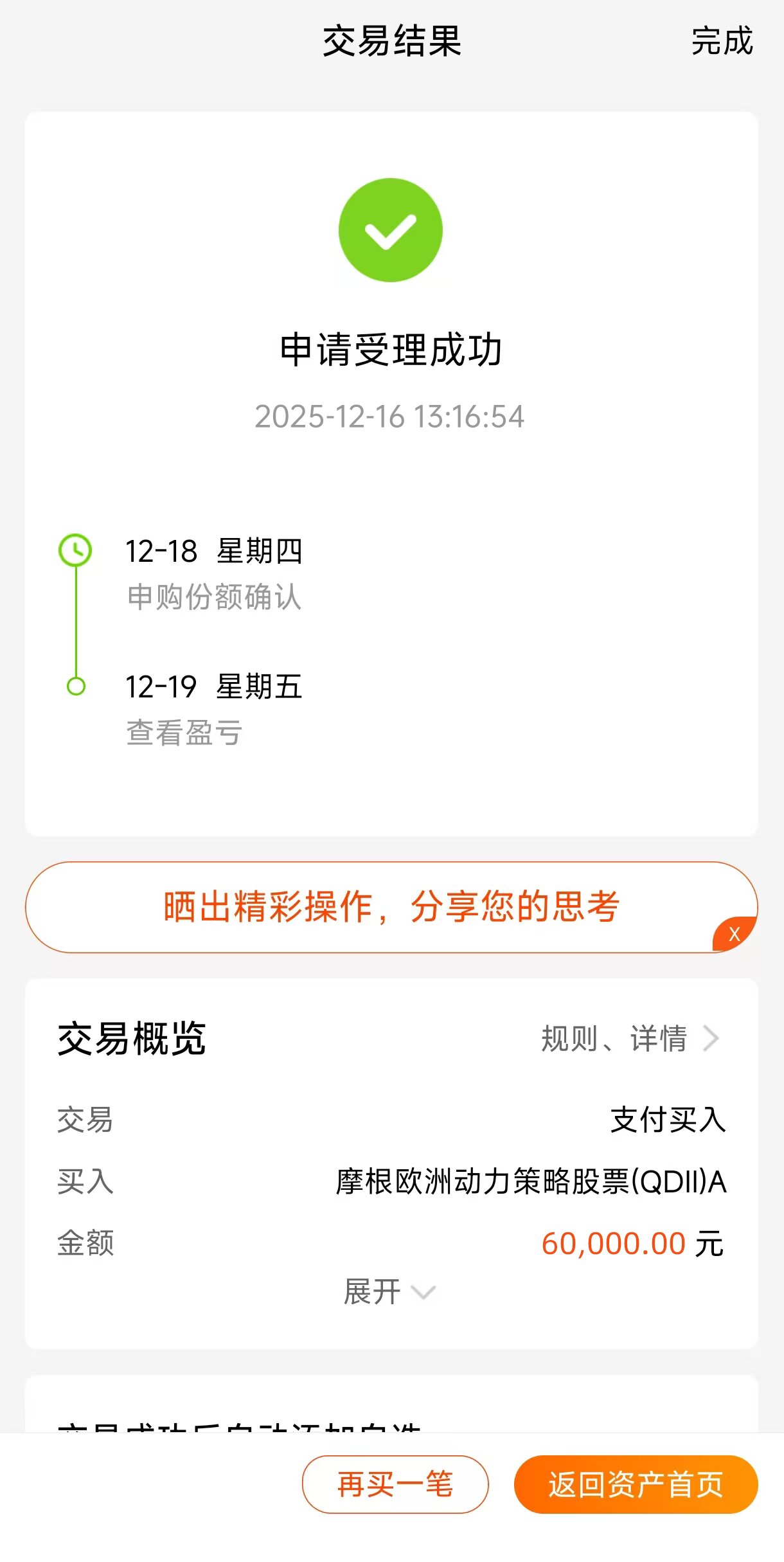 刚刚完成一笔申购,对象是$摩根欧洲动力策略股票(QDII)A$(006282)。对我而言,关键吸引力在于两点:一是它实实在在的业绩,近一年收益22%,近三年48%,年化近10%;二是它每日10万元的申购上限,凸显了在当下获取QDII额度的难度。这只基金像一个精心设计的篮子,装入了来自英、德、法、瑞士、荷兰等13个欧洲国家的资产,并且这个篮子里的金融、工业、消费、医疗、科技五大类资产配置得很均衡。为什么现在是好时机?有数据显示,欧洲股票基金今年以来资金流入强劲,而美国则出现净流出,这种对比凸显了资金的偏好变化。而且欧洲市场正处在几个积极趋势的交叉点:市场整体估值较低,具备性价比;利率环境趋于宽松,有利于股市;消费市场特别是地产相关领域出现回暖迹象;同时,欧洲在绿色能源和高端制造方面的投入,创造了结构性的增长机会。因此,这只实施严格日限额的基金,是参与这些趋势、优化资产配置的一个有效且稀缺的途径。#我国首批L3级自动驾驶车型获批上路#