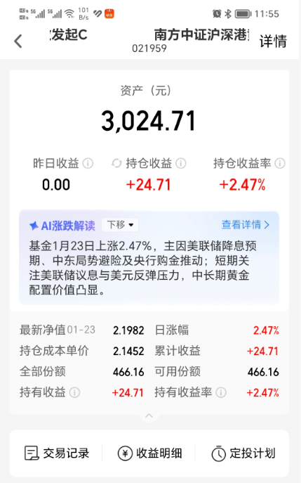 $南方中证沪深港黄金产业股票指数发起C(OTCFUND|021959)$今天加仓1000元。