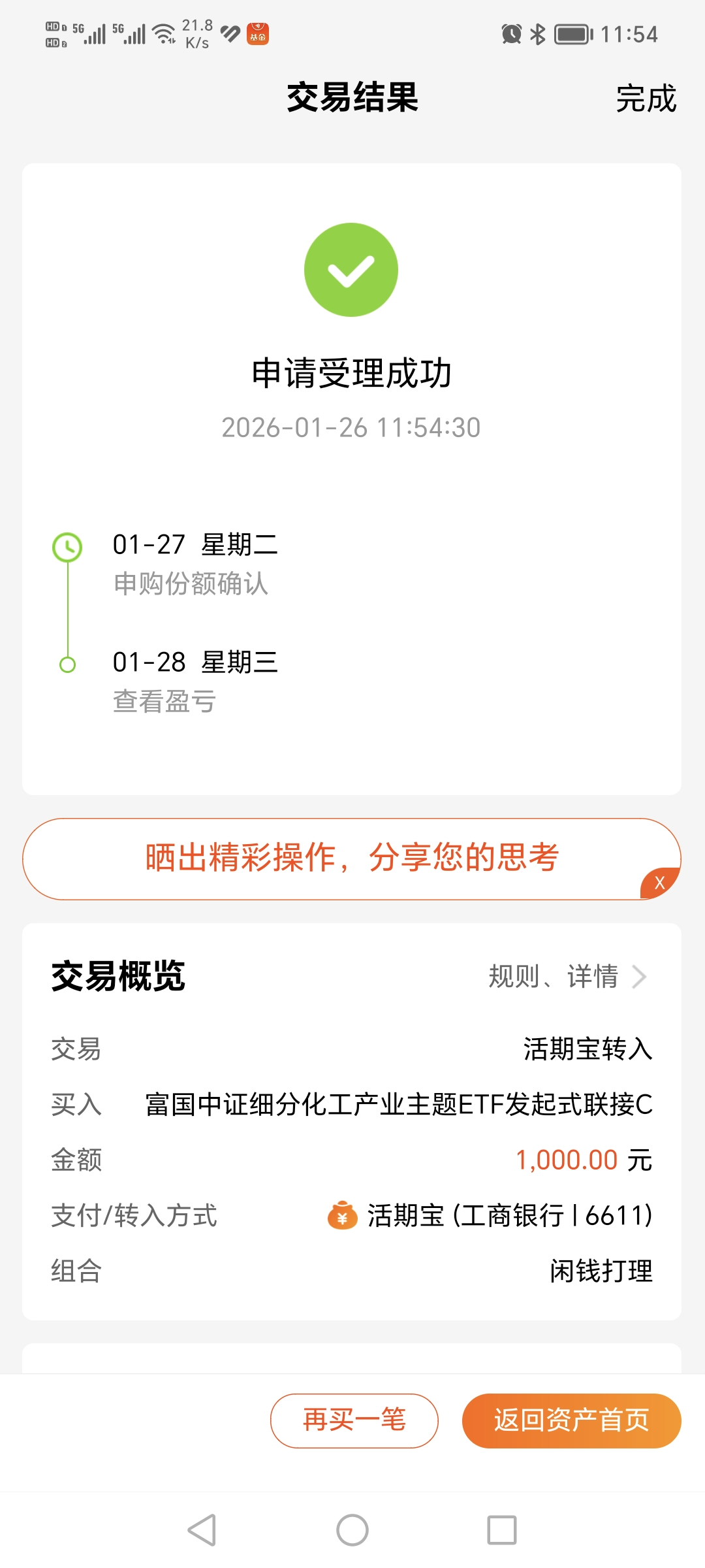 $富国中证细分化工产业主题ETF发起式联接C(OTCFUND|020274)$今天加仓1000元。