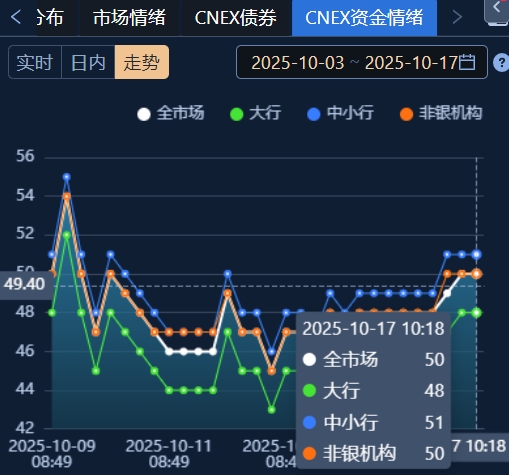 DR001报1.31%左右,DR007报1.38%左右,资金情绪均衡(CNEX资金面情绪指数在50)