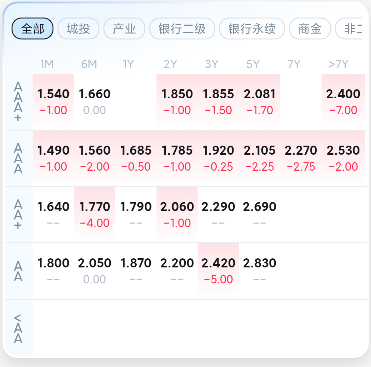 信用债:晴(城投债晴,产业债晴,银行二级债晴,银行永续债晴,商金债晴)