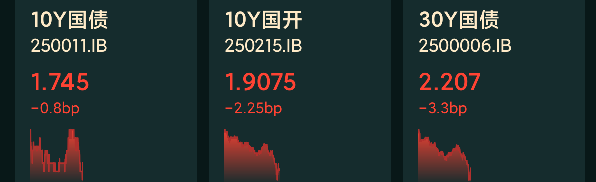 十年期国债收益率:1.745%,-0.8BP(国债收益率越跌,债市越涨)