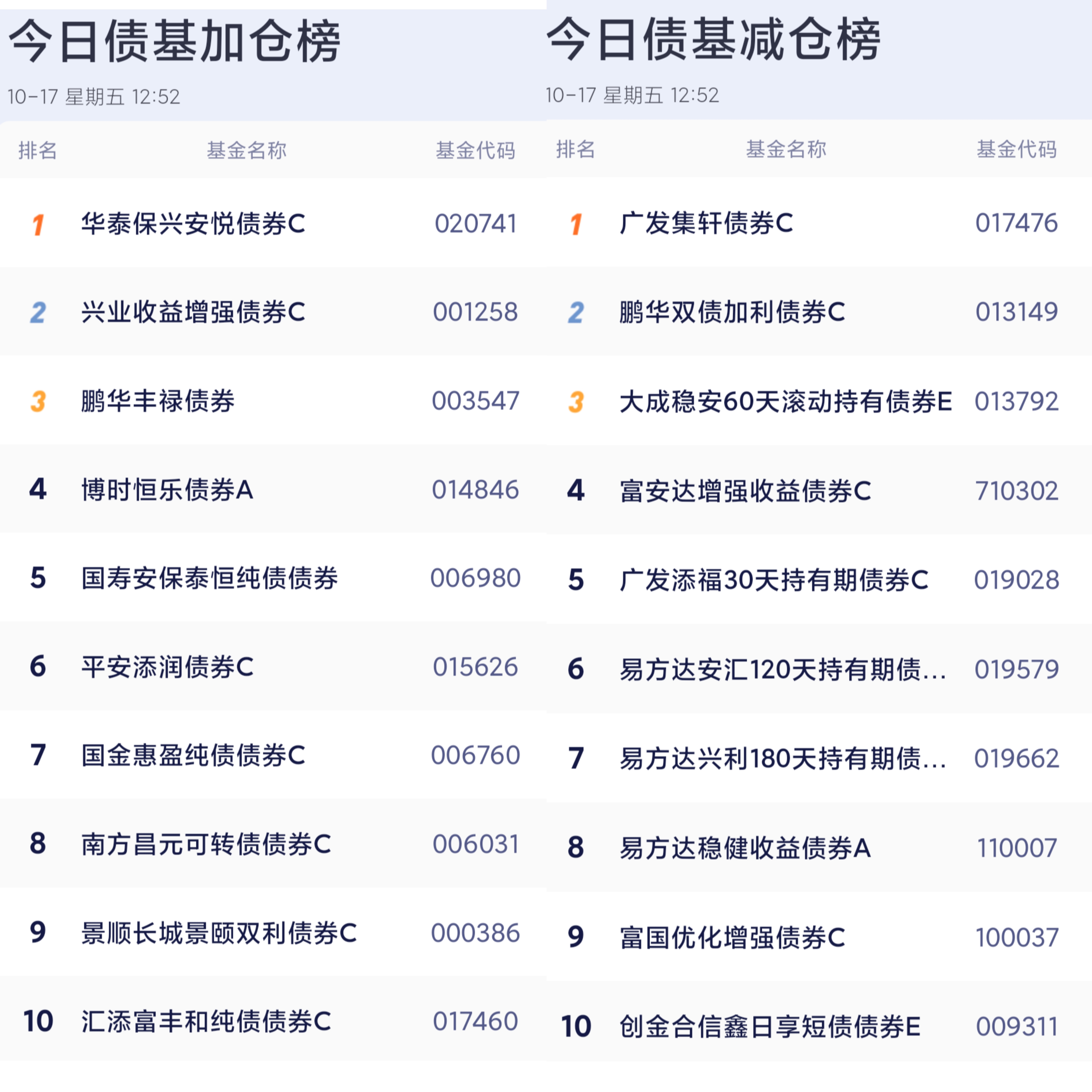 $华泰保兴安悦债券C(OTCFUND|020741)$$广发中债7-10年国开债指数E(OTCFUND|011062)$$汇添富丰和纯债C(OTCFUND|017460)$$景顺长城景颐双利债券C(OTCFUND|000386)$$广发集轩债券C(OTCFUND|017476)$$富国优化增强债券C(OTCFUND|100037)$$平安添润债券C(OTCFUND|015626)$$南方昌元可转债债券C(OTCFUND|006031)$$汇添富添添乐双盈债券A(OTCFUND|017592)$$银华盛泓债券A(OTCFUND|020955)$