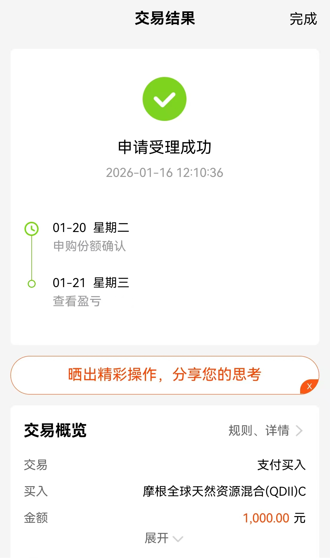所以我的建议是,如果你看好全球资源品的长期配置价值,现在这个时点真的值得重点关注。$摩根全球天然资源混合(QDII)C$(019578)不仅业绩表现好,更重要的是它投资覆盖了全球范畴内的黄金,石油,贵金属以及稀缺矿产标的,这种全球范围的投资视角在市场中是很稀有的。同时,全球地缘政治风险加剧、美元信用体系弱化、新兴领域需求爆发、供应端持续紧张,这些因素共振之下,资源品的投资机会可能才刚刚开始。投资本质上是在不确定性中寻找确定性,而当前环境下,全球优质实物资产及其背后优秀公司的长期战略价值,无疑是为数不多的、逻辑坚实的确定性方向之一。通过一只设计优良的基金,以有限的额度参与这场全球资源价值重估的浪潮,无疑是一种理性而高效的选择。