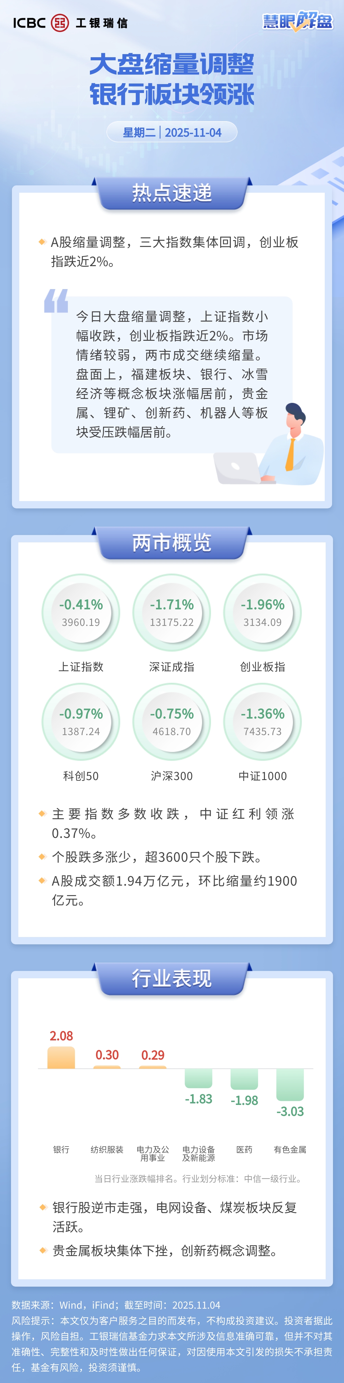 【慧眼解盘】大盘缩量调整 银行板块领涨