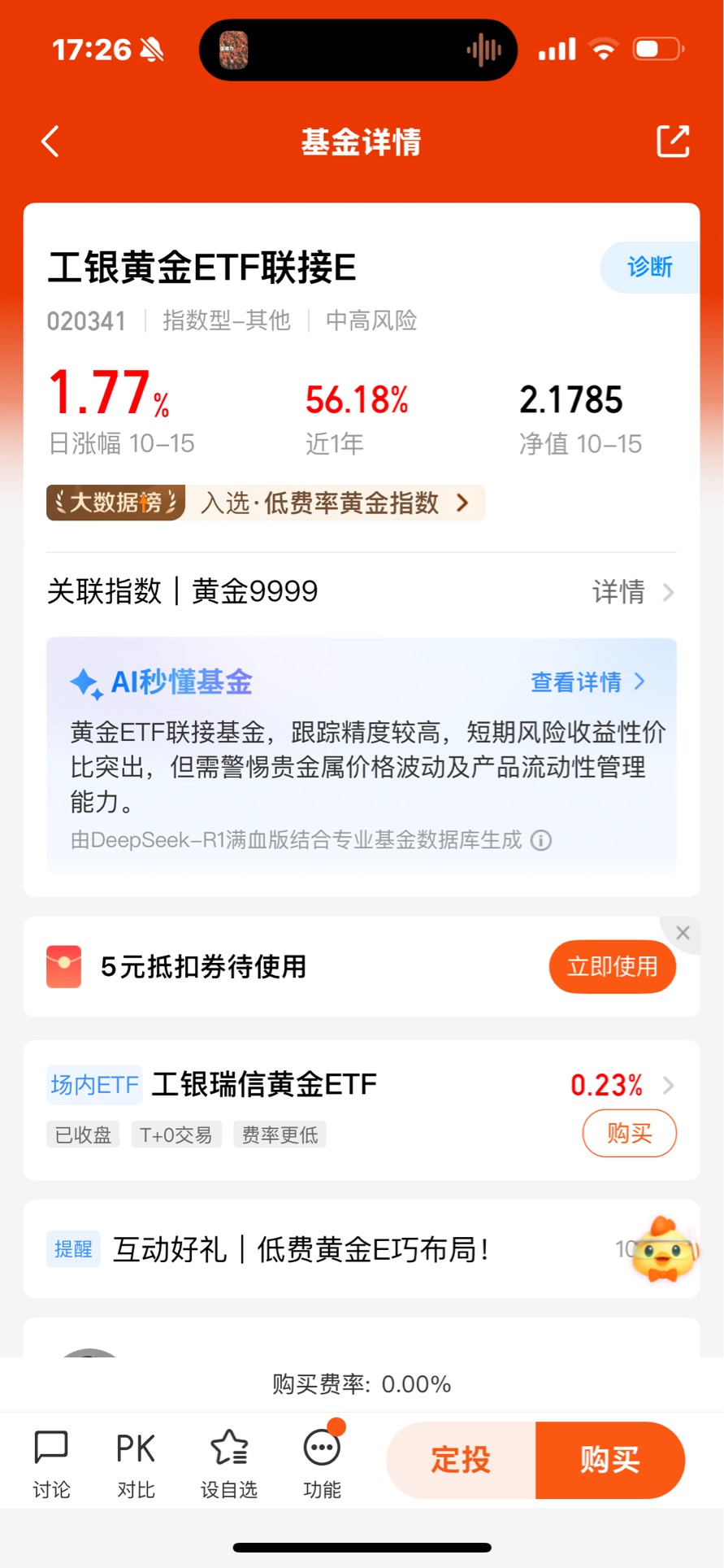 #低费工银黄金E#打卡第十三天,$工银黄金ETE联接E$