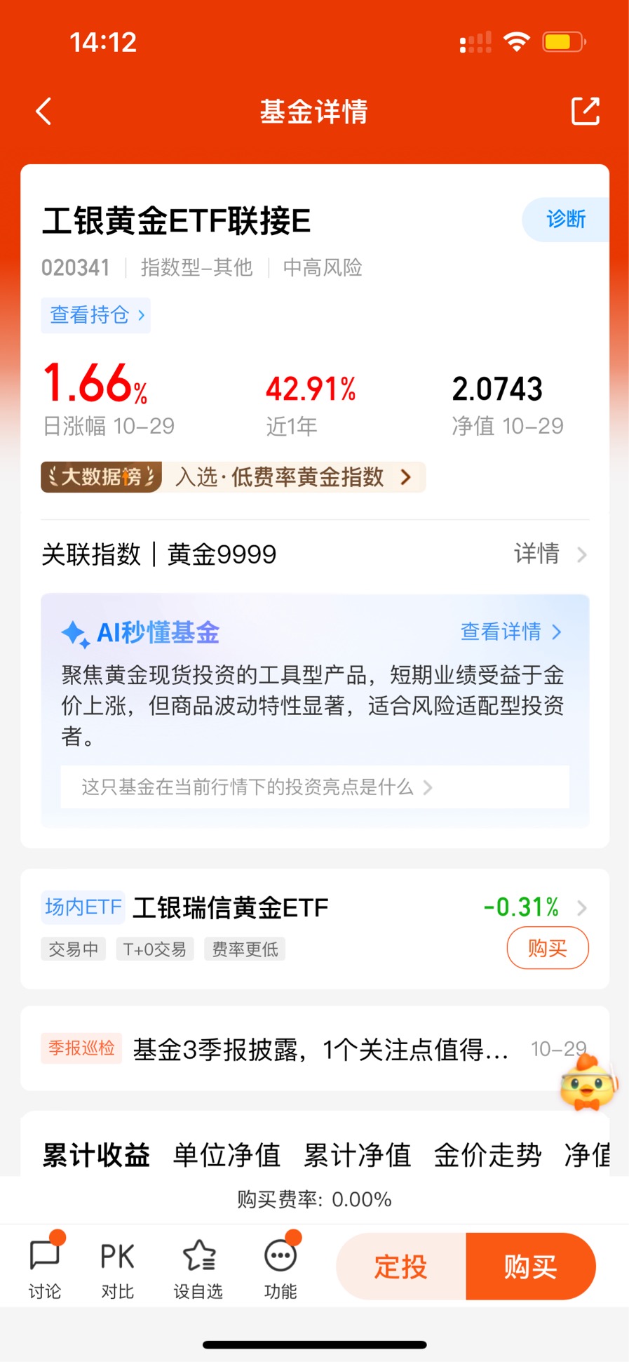 基于此,手里的工银黄金ETF联接基金我个人考虑先拿到春节再说。我也认为黄金还可以“逢跌加仓”。