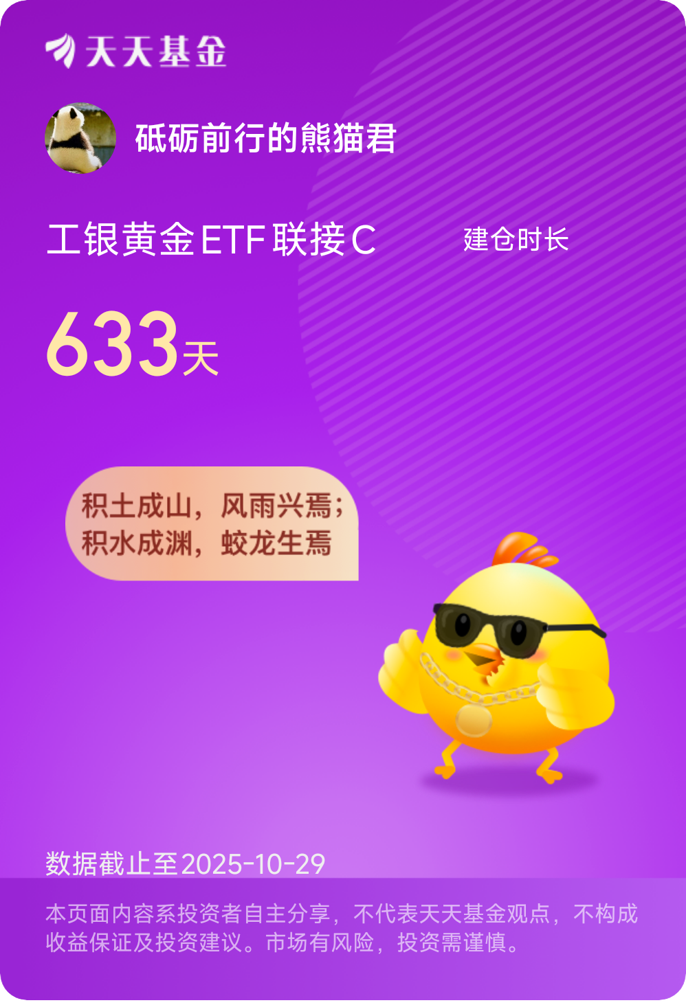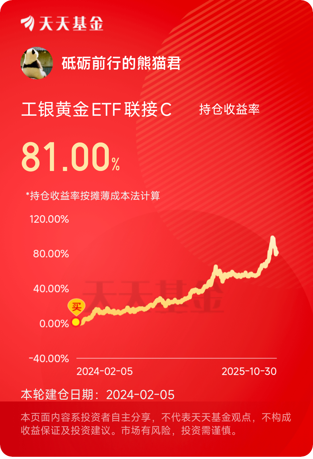 熊猫君说:投资黄金,本质是投资人类对秩序的永恒渴望。在这个不确定的时代,工银黄金ETF联接E用极致费率与透明机制,为普通人铺就了一条通往“反脆弱”的金色栈道。愿你我皆能手握黄金,心向朝阳。@工银瑞信基金