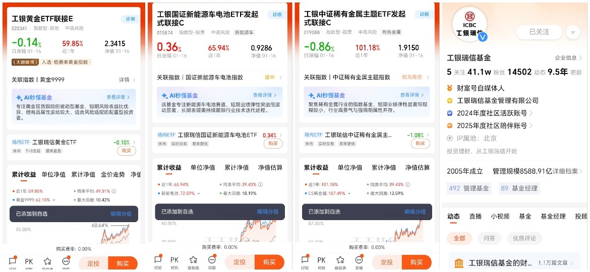 $工银黄金ETF联接E$(020341)为中高风险R4商品型基金,紧密跟踪黄金现货价,2025年涨56.34%,成立来累计收益可观 。E类0申购费,适合波段或中短期配置 。2026年美联储降息、央行购金托底,金价大概率高位震荡上行,但需警惕经济超预期、美元反弹引发回调 。建议小比例配置,逢低加仓,忌追高。@工银瑞信基金