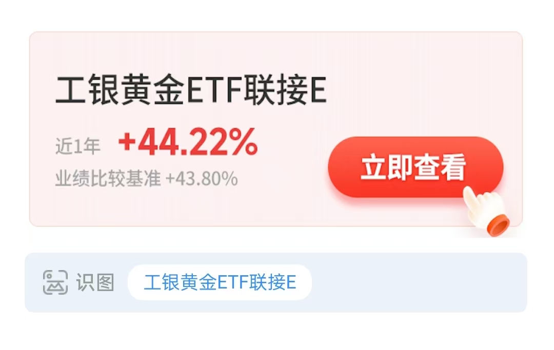 可能有人会问:我自己买点黄金首饰不好吗?别急,这里头门道可多了,买实物黄金吧,储存麻烦不说,想变现还得折价,手续繁杂。新年黄金涨得不给加仓的机会,黄金突破4800、4900,向5100点迈进,这轮牛市来了,不如借道绩优工银黄金ETF联接E基金把握投资机遇。一方面,全市场费率最低一档的工银黄金ETF联接E基金直接帮你“一键打包”黄金优质资源,另一方面通过专业团队精选黄金ETF相关资产,既分散风险,又省去自己盯盘的麻烦。