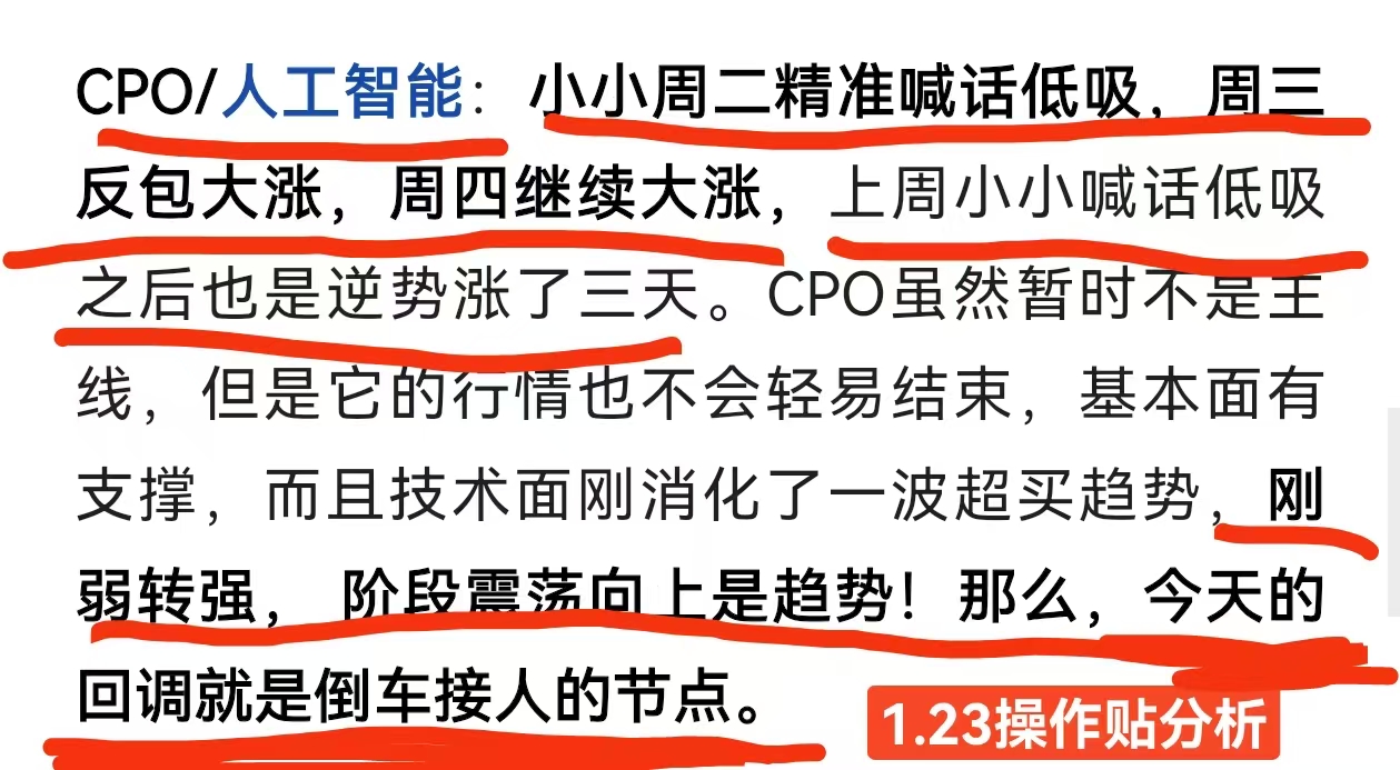 宝子们晚上好!谁懂啊!最近小小直接焊死在精准预判这个赛道上,凡尔赛模式直接拉满!前两周CPO被全网唱衰喊成昨日黄花,小小直接硬刚回怼,CPO反手就是三连涨,打满全场!