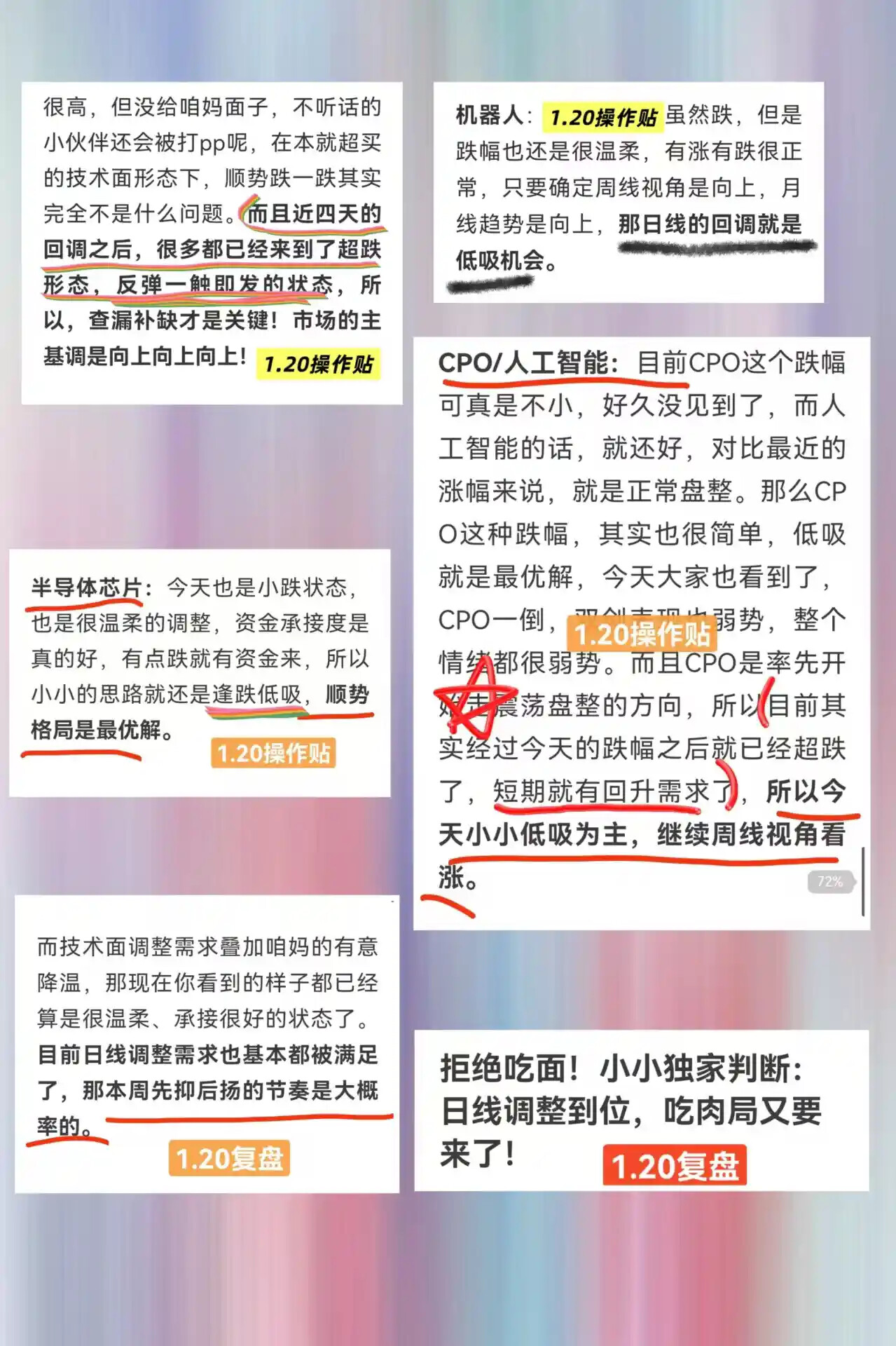 上周大盘大跌两天,CPO跌幅居前,全网慌成一团,小小精准喊话CPO低吸为主,直言CPO和市场都是反弹一触即发,结果话音刚落,CPO直接大涨两天,一众标的狂创阶段新高,市场也是连涨三天!跟上的宝子直接躺赢!