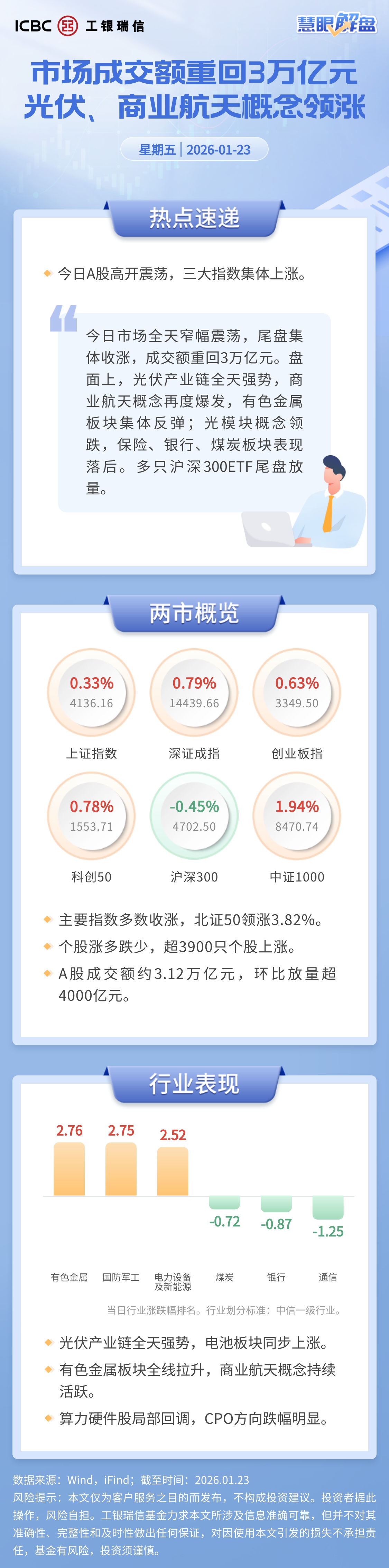 【慧眼解盘】市场成交额重回3万亿元 光伏、商业航天概念领涨