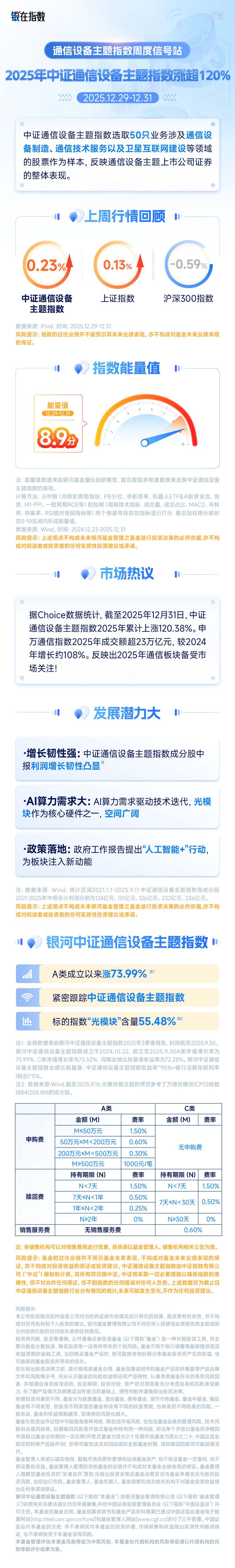 据Choice数据统计,截至2025年12月31日,中证通信设备主题指数2025年累计上涨120.38%。申万通信指数2025年成交额超23万亿元,较2024年增长约108%。反映出2025年通信板块备受市场关注!(数据来源:Choice)