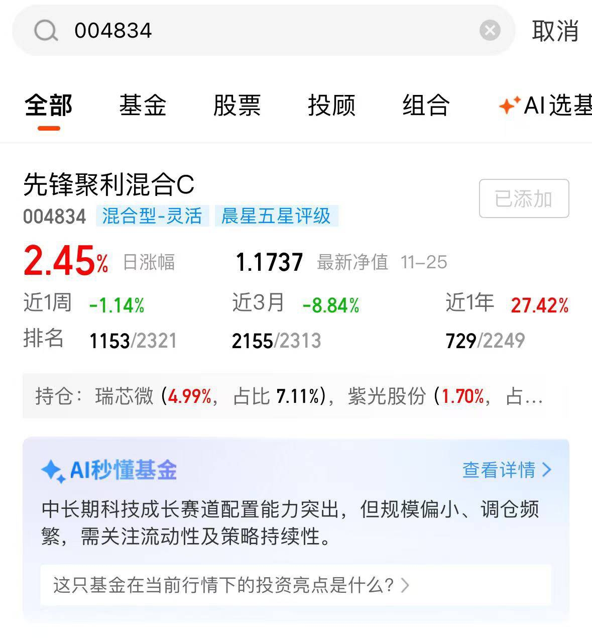 不被短期波动干扰,坚定看好先锋聚利C,它持仓的通讯、半导体等都是重点发展领域,设